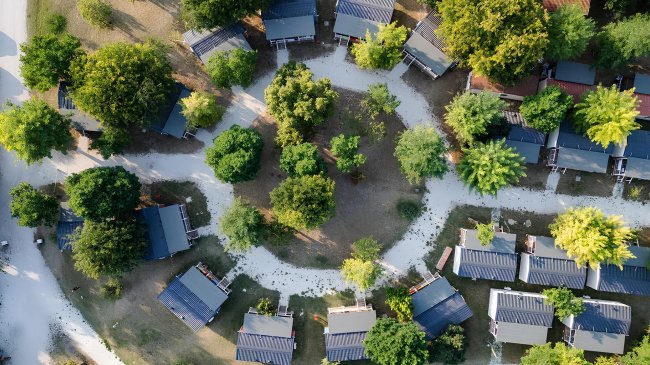 Gli alloggi si adattano alle esigenze di tutti: sono infatti presenti confortevoli villini in muratura (sia singoli che a schiera) che casemobili, oltre all’area campeggio con ampie e ombreggiate piazzole. A disposizione degli ospiti un’area piscina ubicata al centro del villaggio, attrezzata con due vasche, una per gli adulti e una per i bambini. La parte dedicata agli adulti, la più grande, è profonda da 1 metro ad un 1 metro e 70 cm, mentre la vasca dedicata ai bambini è a profondità costante 90 cm. L’area piscina è circondata da un grande prato verde ed è attrezzata con lettini e poltrone. In quest’area vengono organizzate anche le attività di animazione per grandi e piccoli. Vicino alla piscina si trovano il bar ed il ristorante. La struttura mette inoltre a disposizione (gratuitamente) il servizio navetta per la zona spiaggia, i clienti potranno scegliere tra due tipologie di spiaggia: con sassi oppure di sabbia "riportata". Novità dalla stagione 2022: accesso diretto dalla struttura alla pista ciclabile.
