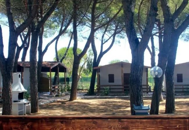 casa mobile trilocale; aria condizionata; area giorno con angolo cottura, frigo a colonna; tv; 1a camera con letto matrimoniale; 2a camera con 2 letti singoli + 1 letto di dimensioni ridotte attaccato alla parete (adatto ad una persona di massimo 150 cm e 60 kg); bagno con box doccia e bidet. Veranda esterna coperta.